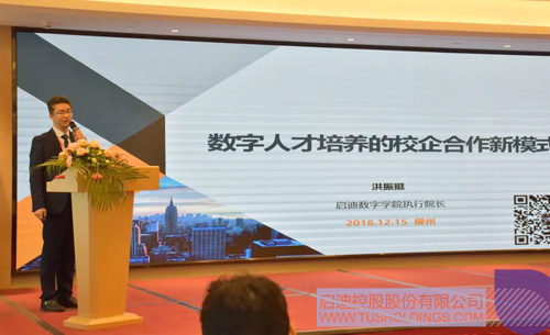 啟迪數字學院執行院長、啟迪博士后科研工作站站長洪振挺作《數字人才培養的校企合作新模式》主題報告
