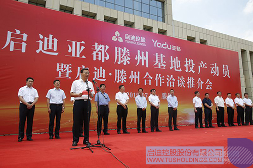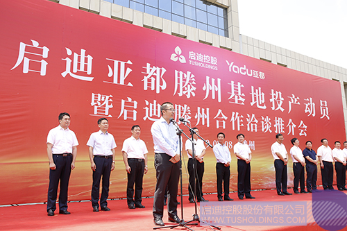 邵士官在投產(chǎn)動(dòng)員會(huì)上致辭。他說,啟迪控股資源豐富、實(shí)力雄厚,是全球科技服務(wù)領(lǐng)域的企業(yè)龍頭和行業(yè)典范。今天投產(chǎn)的啟迪亞都加濕器項(xiàng)目,科技含量高、市場前景好、帶動(dòng)能力強(qiáng),對(duì)于加快我市智能制造產(chǎn)業(yè)發(fā)展、助力新舊動(dòng)能轉(zhuǎn)換具有重要意義。項(xiàng)目落戶滕州,必將開啟雙方友好合作、攜手發(fā)展新篇章。我們將秉持“親商、安商、富商”的理念,把推進(jìn)項(xiàng)目建設(shè)作為市委、市政府的重點(diǎn)工程來抓,扎實(shí)做好服務(wù)支持推動(dòng)工作。希望啟迪以項(xiàng)目竣工投產(chǎn)為新起點(diǎn),進(jìn)一步加大投入和管理創(chuàng)新力度,推動(dòng)更多項(xiàng)目、資金、人才、技術(shù)落戶滕州,努力實(shí)現(xiàn)企地雙贏,爭取早日建成國內(nèi)一流的智能制造基地。