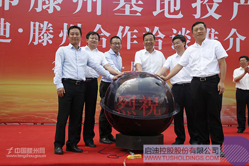 會(huì)上,邵士官、王書貴、馬曉偉、張延偉、龍林,共同為啟迪亞都滕州公司投產(chǎn)啟動(dòng)水晶球。