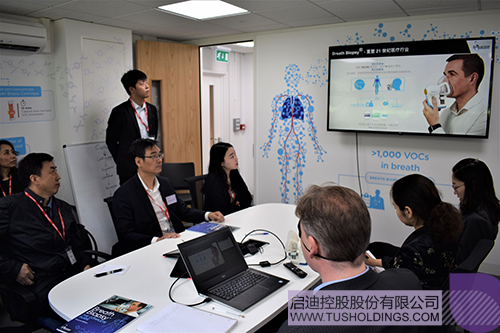 金勤獻院長一行與Owlstone、Biosceptre兩家劍橋的生命科技研發(fā)企業(yè)的負責(zé)人進行交流,Owlstone是一家從事呼吸活檢技術(shù)全球領(lǐng)先的創(chuàng)新研發(fā)企業(yè),獲得多家知名風(fēng)險投資青睞,目前與上海仁濟醫(yī)院合作開展肺癌早期檢測的臨床試驗;Biosceptre專注于開發(fā)針對nfP2X 7的下一代癌癥治療方案,目前已完成臨床I期試驗,該公司在獲得啟迪投資后正積極探索落地中國的方案。隨后,金勤獻院長介紹了清華大學(xué)在醫(yī)學(xué)領(lǐng)域強大的學(xué)術(shù)資源與研發(fā)能力,同時介紹了全球健康藥物研發(fā)中心與荷塘資本,他表示清華大學(xué)已經(jīng)建立起具備全方位創(chuàng)新服務(wù)能力的成果轉(zhuǎn)化體系,期待與世界前沿的生命科技研發(fā)企業(yè)在聯(lián)合研發(fā)、市場拓展、股權(quán)投資等開展多層次合作。