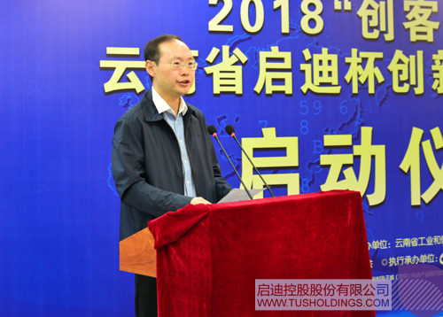 4月25日,2018年“創客中國”云南省啟迪杯創新創業大賽啟動儀式在云上小鎮·云大啟迪K棧眾創空間舉行。工信部中小企業局副局長、玉溪市委常委、副市長田川,云南省工信委黨組副書記、副主任唐文祥,昆明市政協副主席董林,昆明市政府副秘書長羅峻,啟迪控股高級副總裁、云南啟迪董事長陳禹,云南省各州(市)工業和信息化委分管領導及相關負責人、呈貢區政府、昆明市有關委辦局負責人出席啟動儀式。昆明市工業和信息化委黨組書記、主任嚴敏主持啟動儀式。