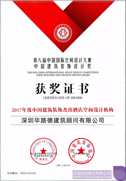 近日,由中國建筑裝飾協會、中共深圳市福田區委、深圳市福田區人民政府共同舉辦的第八屆中國國際空間設計大賽(中國建筑裝飾設計獎)頒獎盛典在深圳會展中心盛大舉行。作為酒店設計行業的引領者,啟迪控股成員企業畢路德被授予“2017年度中國建筑裝飾杰出酒店空間設計機構”。同時,畢路德作品“海境界展廳”斬獲商業、金融、售樓處空間工程類最高獎金獎。