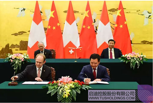 2016年4月8日,在人民大會堂隆重舉行的中瑞兩國系列重要合作簽約儀式上,啟迪控股與瑞士國家創新園簽署了友好合作協議。中國國家主席習近平,瑞士聯邦主席施耐德?阿曼出席并見證了簽字儀式。啟迪控股時任總裁王濟武,瑞士國家創新園總裁雷蒙德?克龍分別代表雙方在合作協議上簽字。