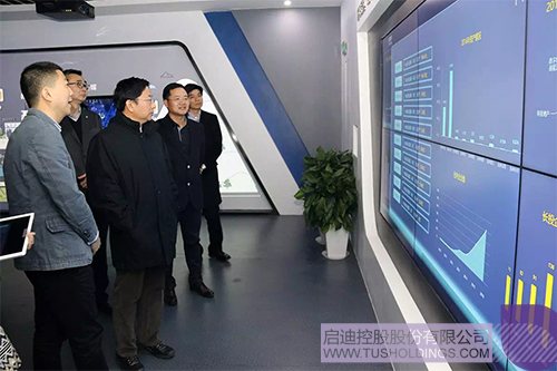 1月19日,在啟迪控股2017年度工作會議期間,清華控股股份有限公司董事長徐井宏視察啟迪控股數(shù)字展示中心,啟迪控股董事長王濟武、黨委書記兼副董事長李志強、總裁袁桅及與會全體高管團隊陪同視察。